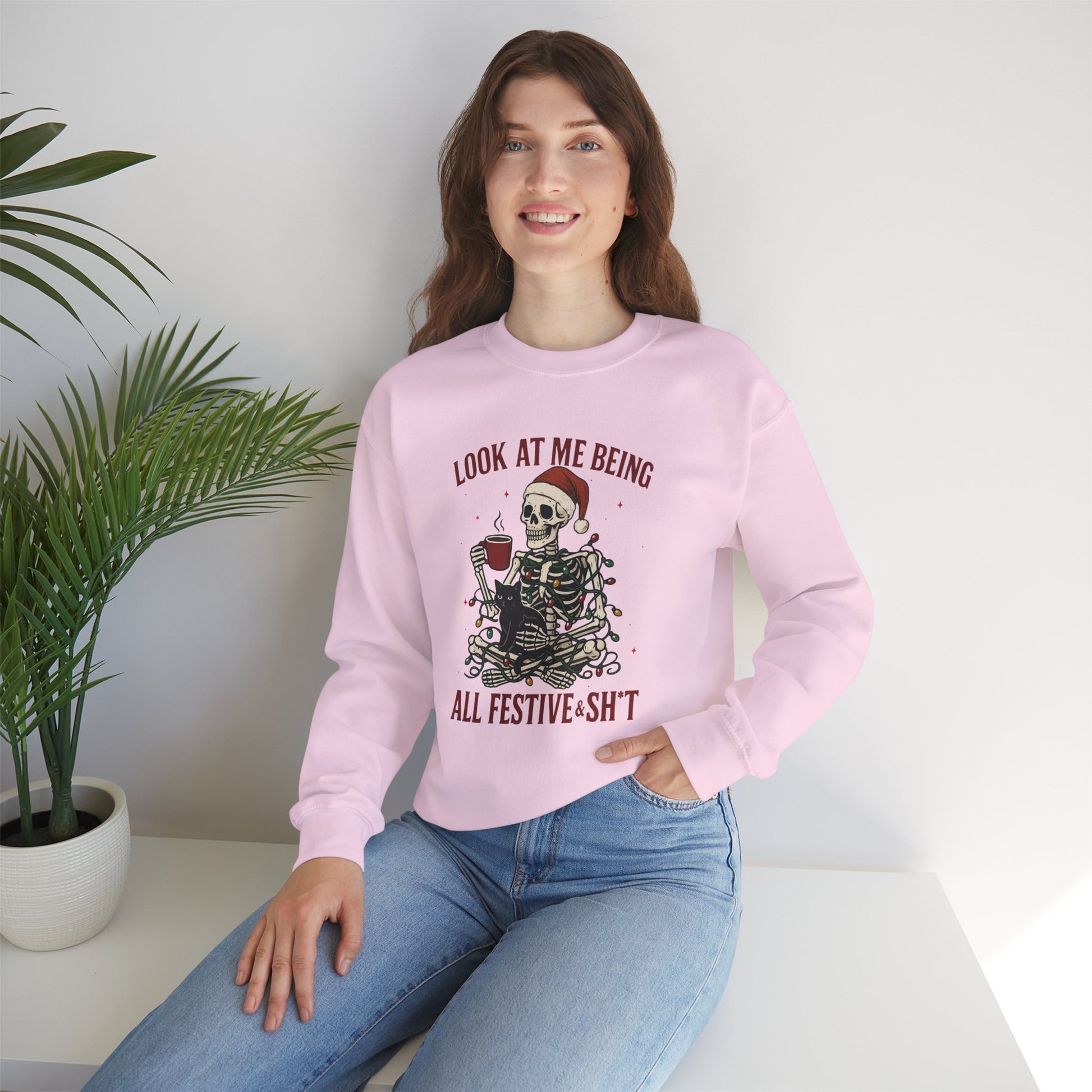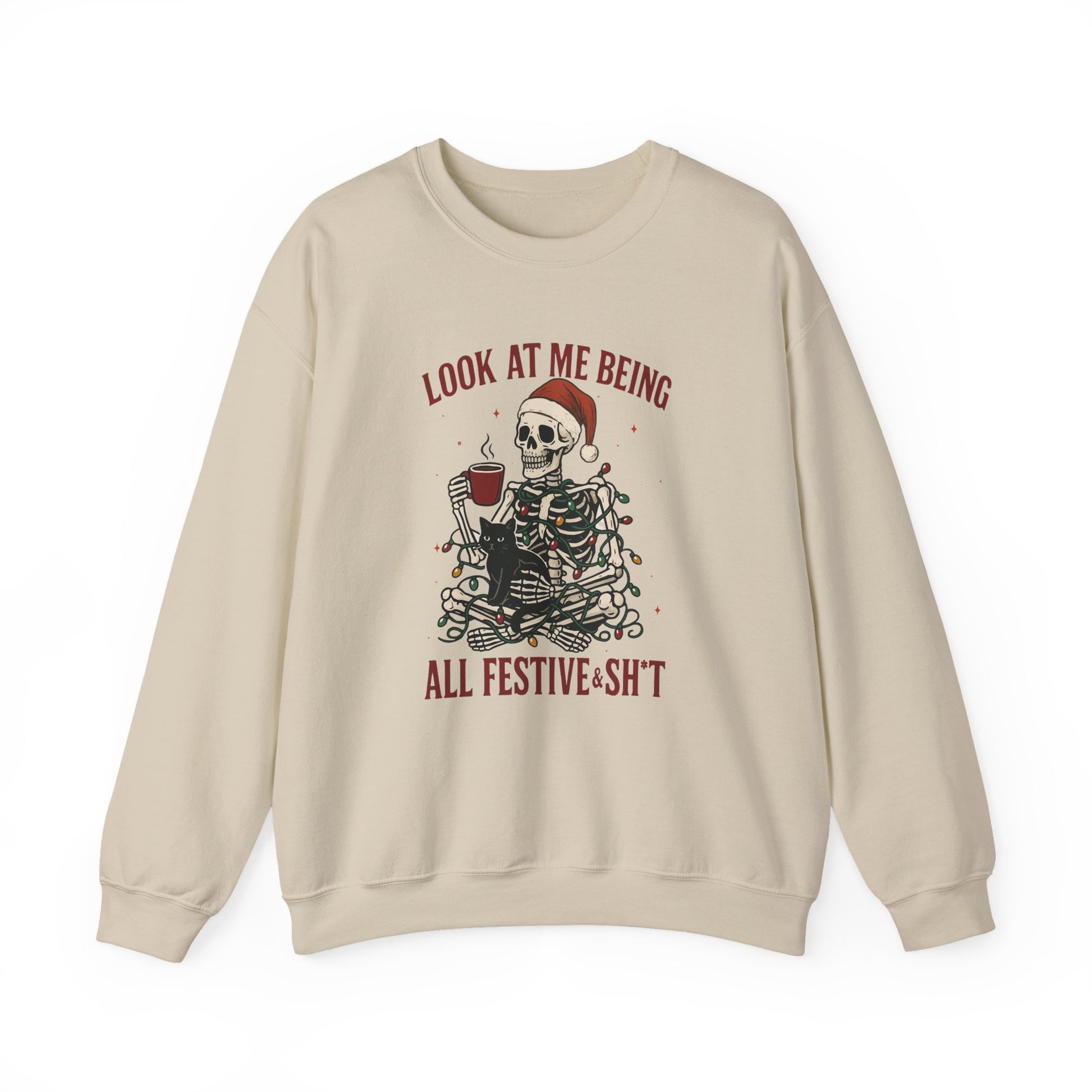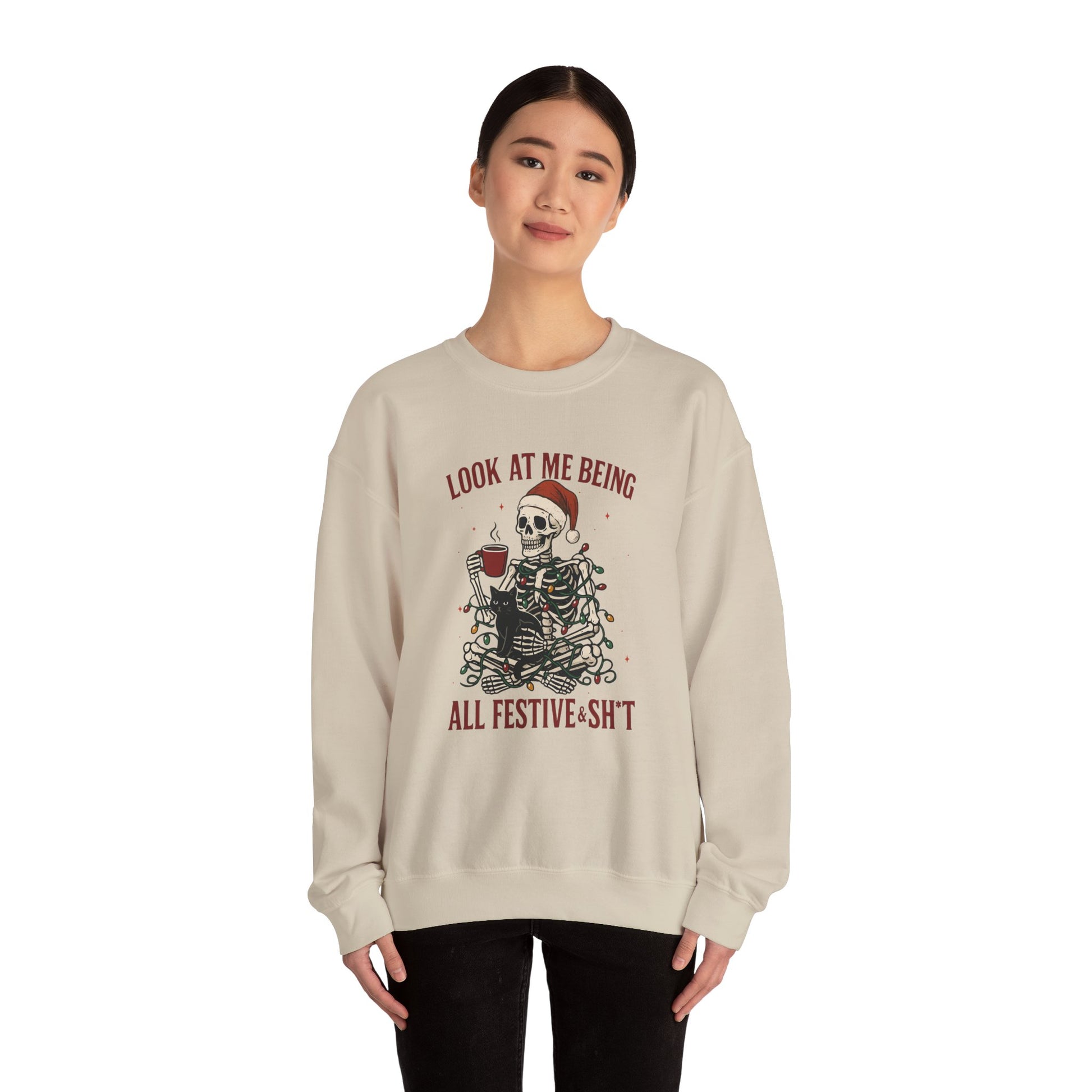 Funny Christmas, Snarky Skeleton Sweatshirt Unisex Christmas, Holiday Gift, Cozy Layer, Halloween Apparel, Funny Christmas Sweatshirt